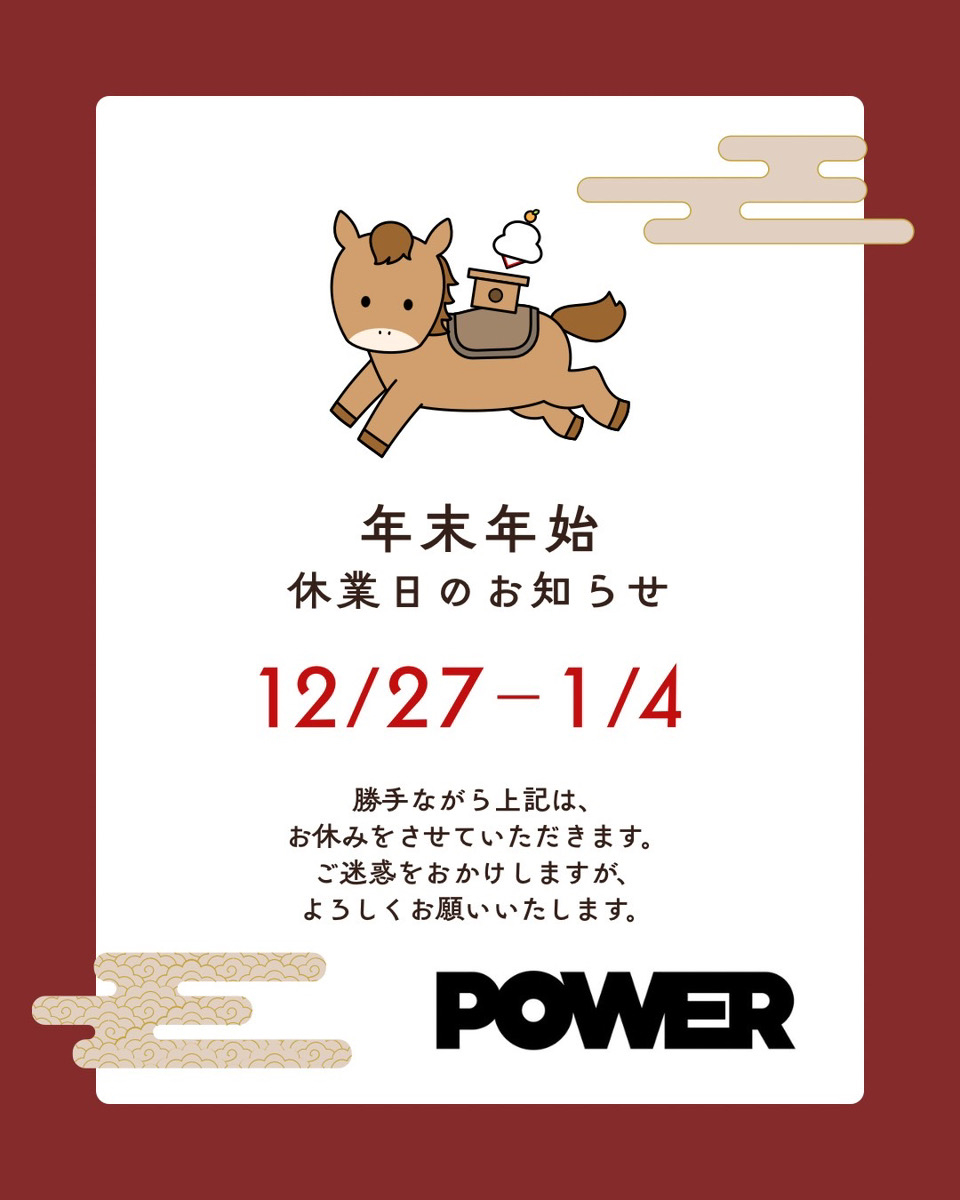 年末年始の休暇は12/27〜1/4となります。